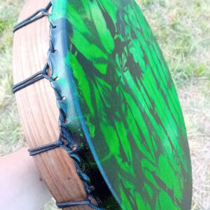 This Shamanic Healing Drum is crafted with natural spotted goatskin, offering a unique and organic look. The drum features an ash hoop, providing durability and a natural aesthetic. Sized at 18 inches in diameter, it delivers resonant tones ideal for healing practices. Includes a beater and rattle for a complete playing experience.
